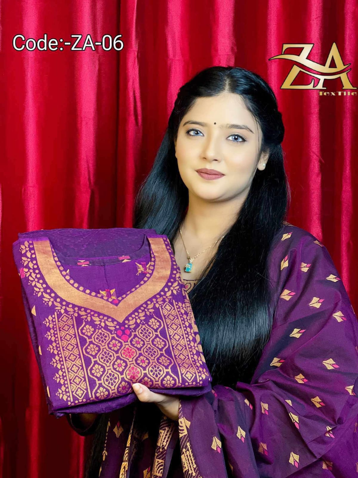 ১০০% সুতি মণিপুরি তাঁত ত্রি-পিস কোড ZA 06